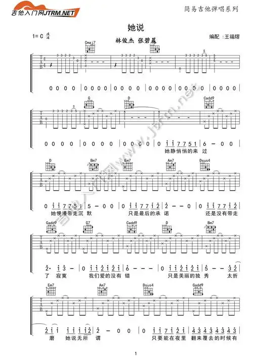 她说 张碧晨林俊杰 吉他谱 和弦谱