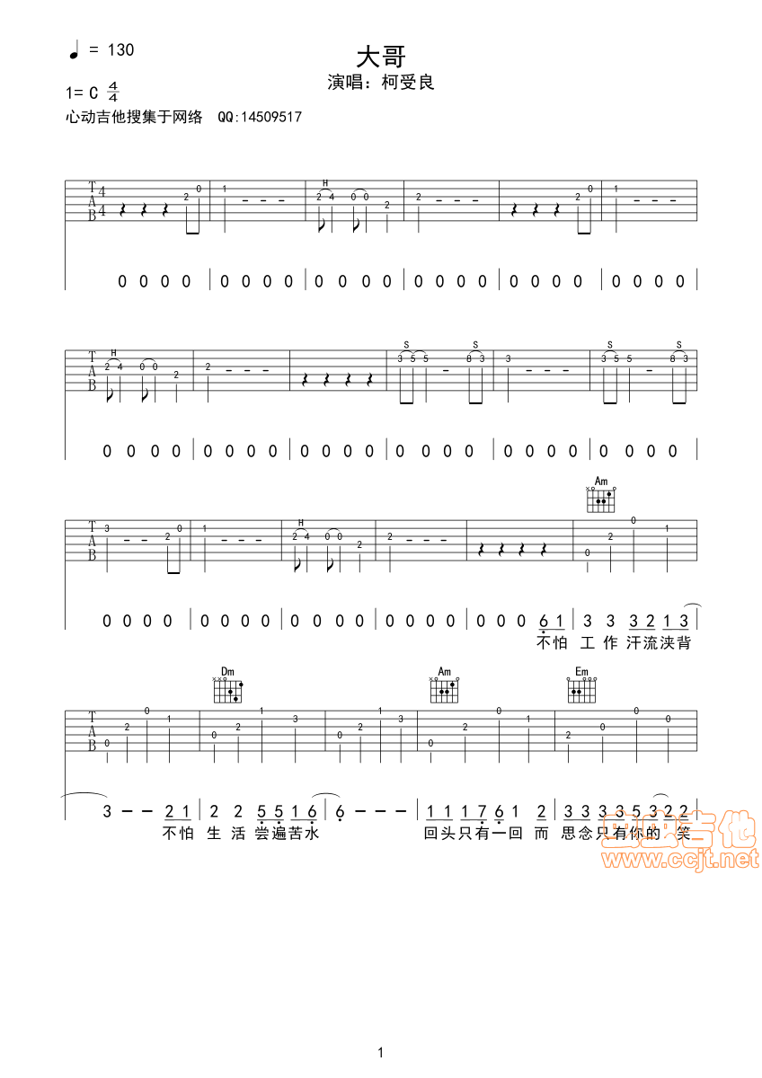 大哥吉他谱-弹唱谱-c调-虫虫吉他