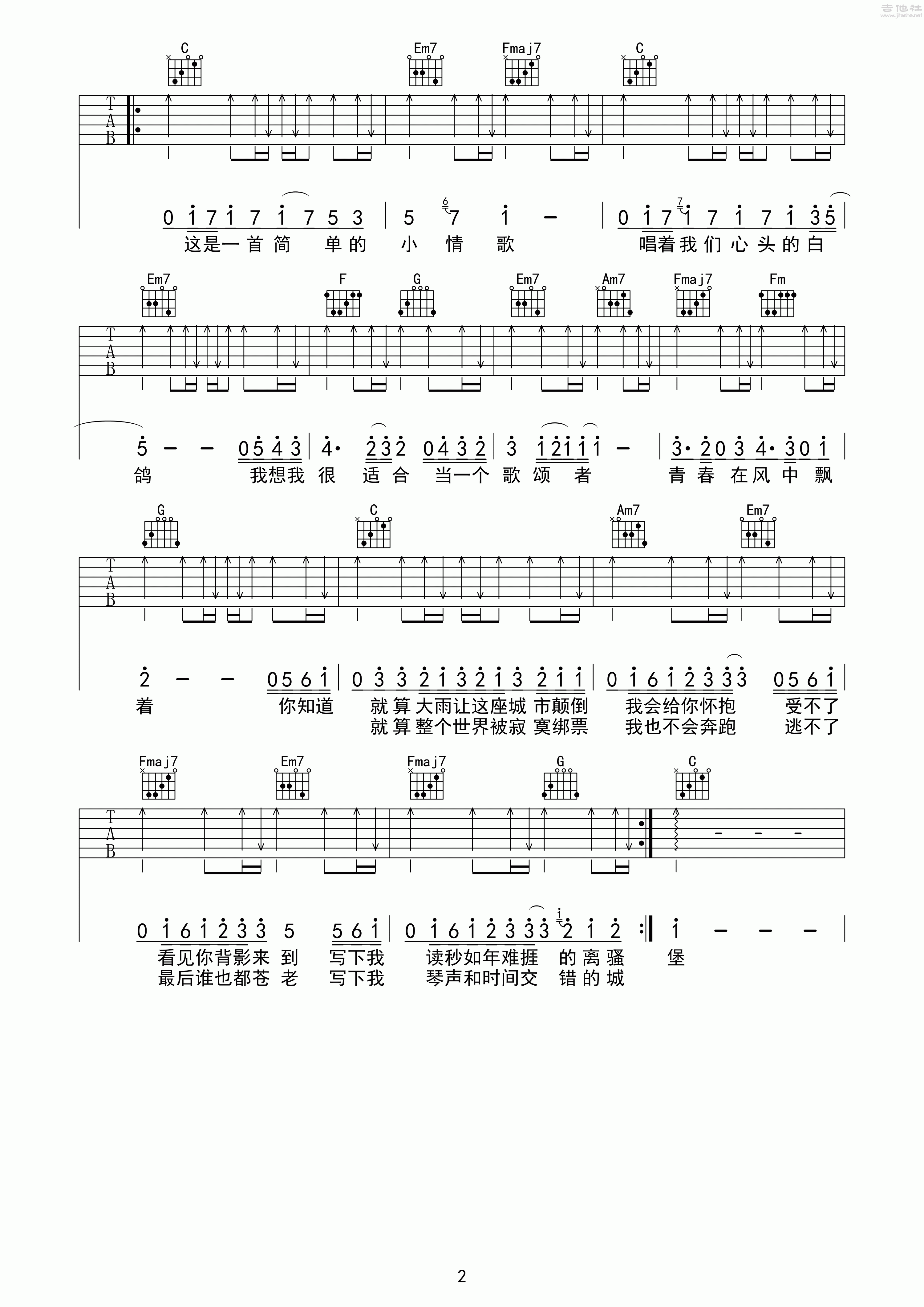 小情歌简易版c调六线吉他谱-虫虫吉他谱免费下载