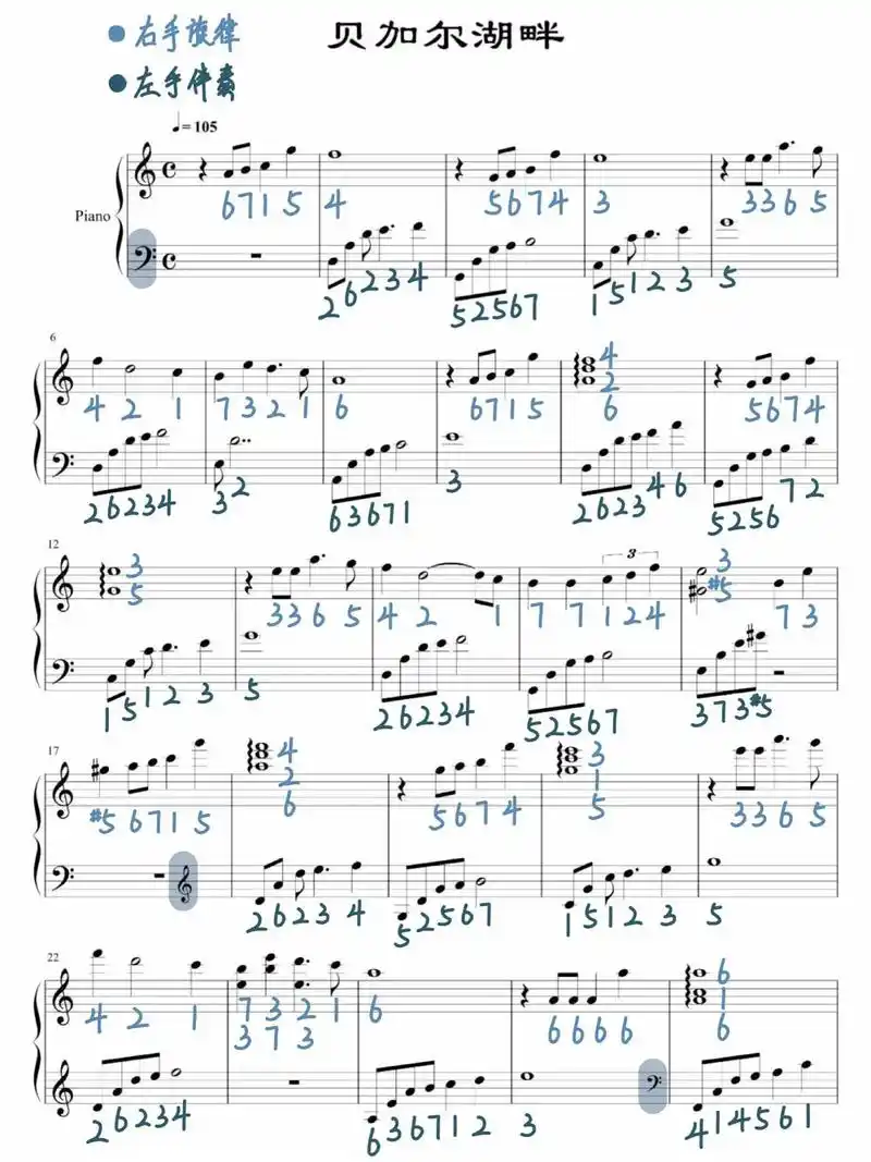 《贝加尔湖畔》钢琴谱(附双手简谱)~|||c大调简单版 - 抖音