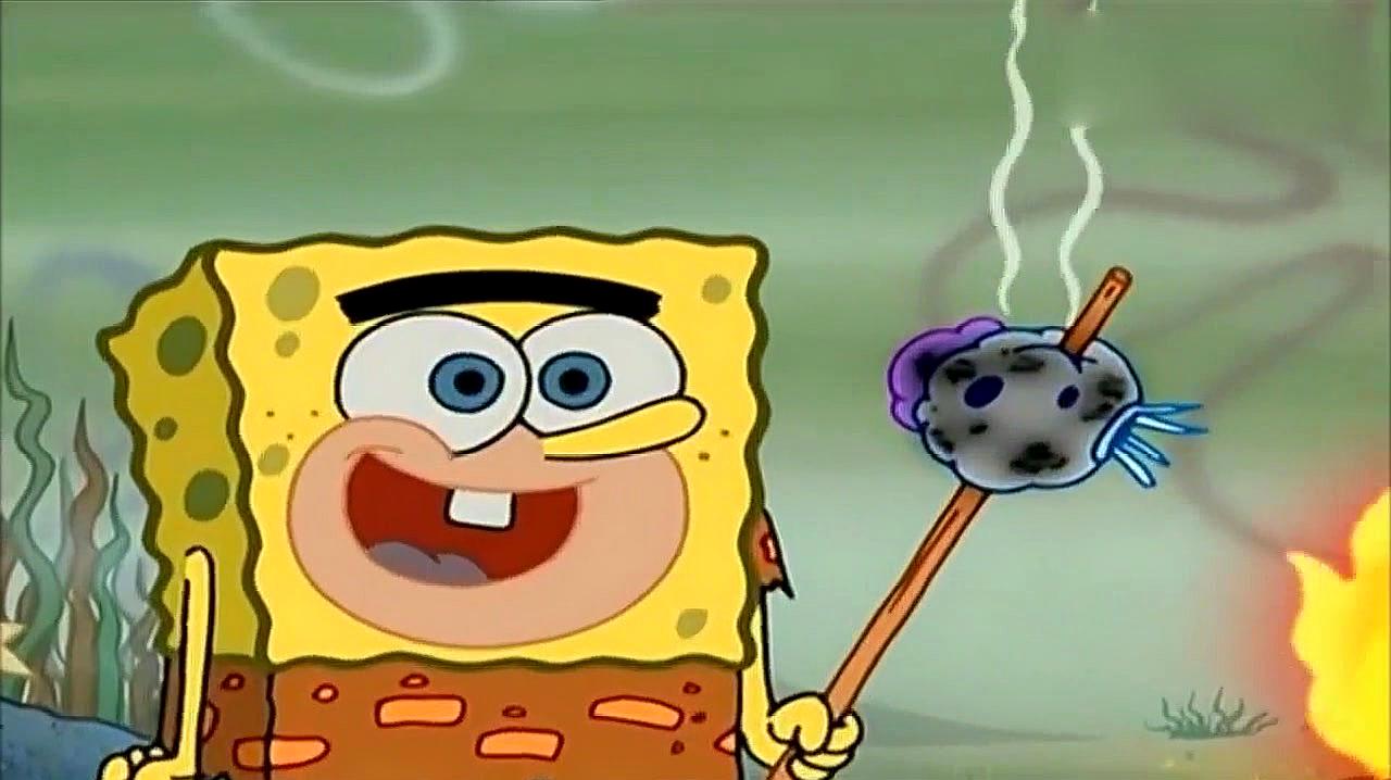 海绵宝宝他们变成了原始人,竟然还吃起了烧烤?看饿了!