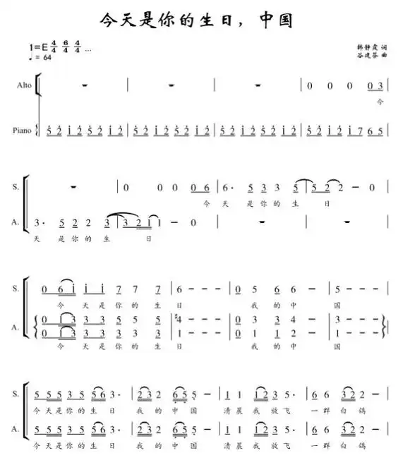国家 陈国权 二声部合唱谱 童声合唱谱 女声合唱谱 简谱 钢琴伴奏谱