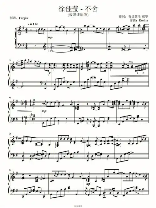 徐佳莹《斗罗大陆》片尾曲《不舍》原唱视听简谱,最后送完整简谱