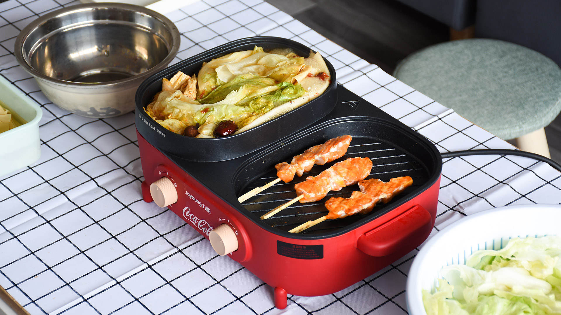 时光旧巷火锅烧烤一体锅煎烤涮煮烧烤炉家用多功能电烤炉无烟烤肉盘电