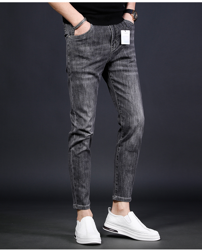 范莉泰烟灰色牛仔裤男修身小脚裤夏季薄款韩版潮流时尚百搭休闲牛仔
