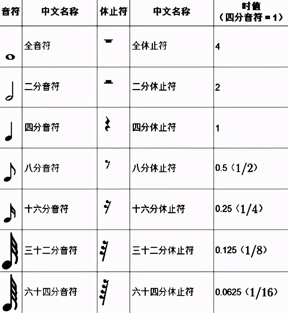 休止符对应的音符时值▼休止符是记录音乐中音响暂时间断的符号,但