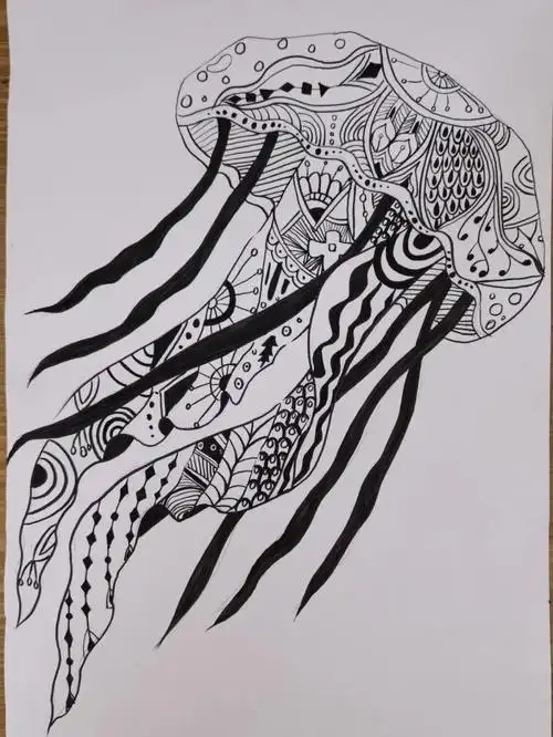 丹丹创意美术#创作灵感 用线描的方法画可爱的水母,你学会了 - 抖音