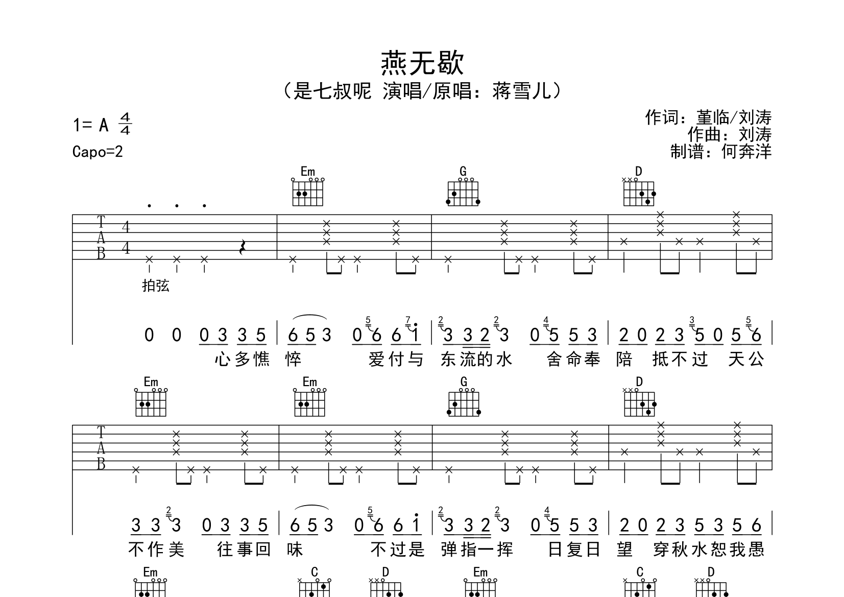 蒋雪儿《燕无歇》吉他谱-彼岸吉他论坛-彼岸吉他