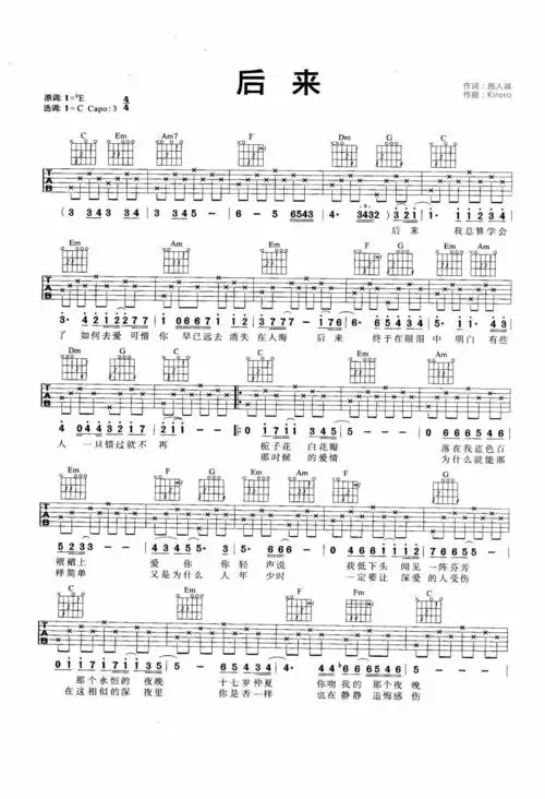 后来(吉他弹唱)_后来(吉他弹唱)简谱_后来(吉他弹唱)吉他谱_钢琴谱-查