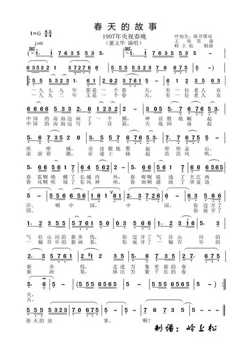 春天的故事(董文华演唱)简谱-通俗曲谱-爱曲谱网