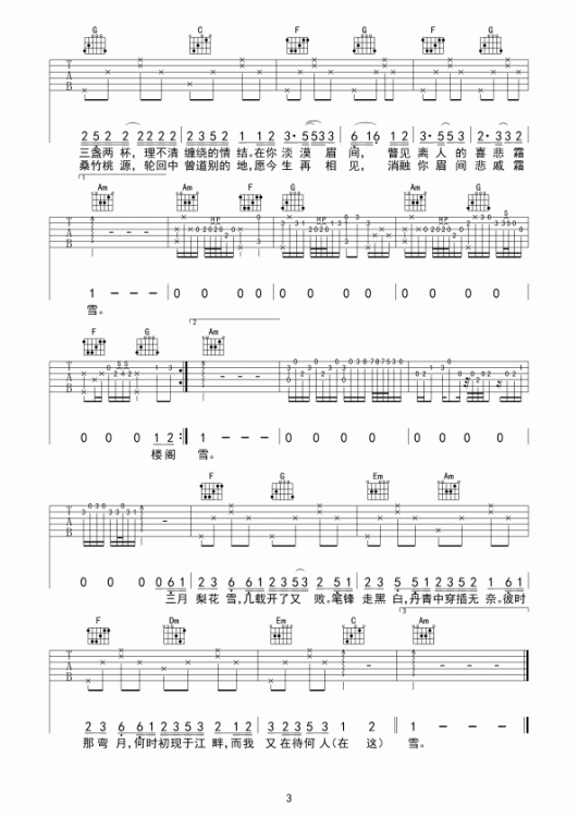 霜雪千年吉他谱c调世界首富编配双笙