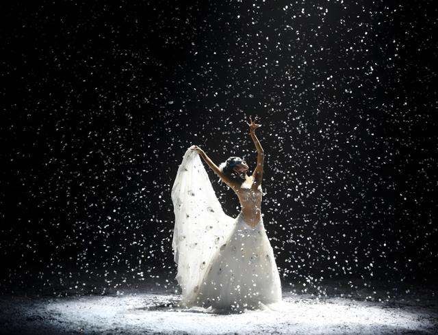 有网友发布了一套由杨丽萍编排的舞蹈作品《孔雀》在舞台上的照片