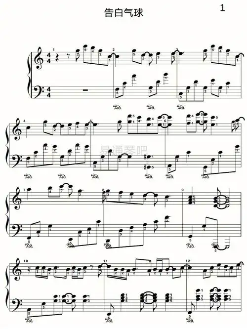 告白气球钢琴谱_周杰伦_完美演奏版