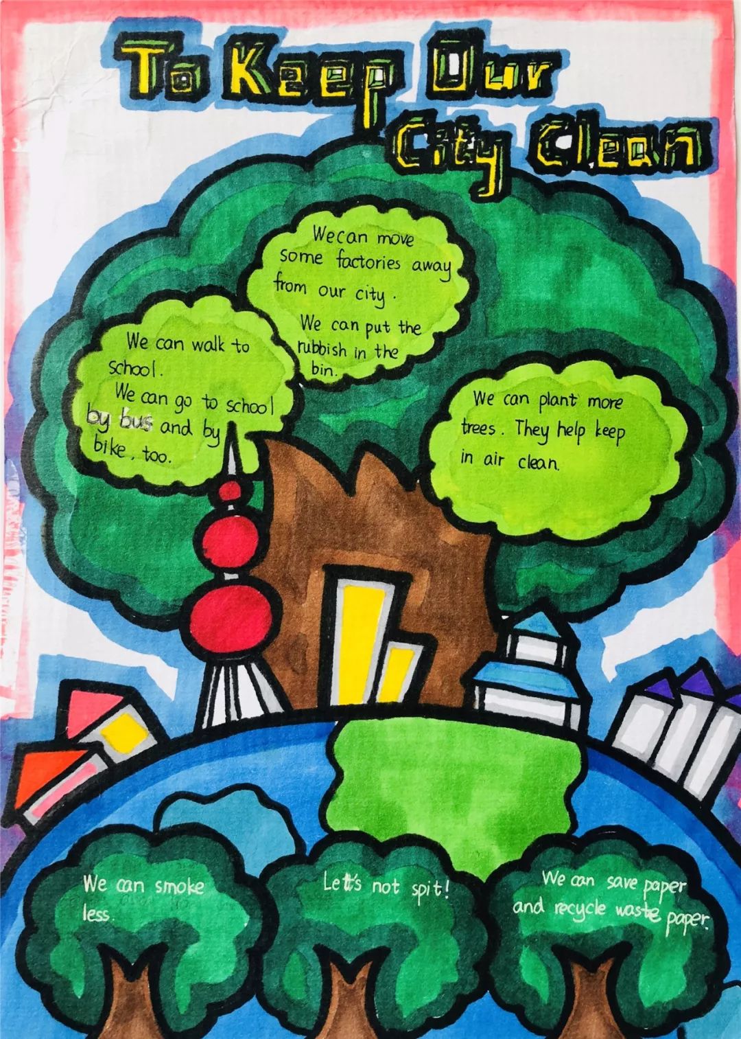 幸福小浪花善待地球妈妈守护绿色家园2019年英语环保海报制作比赛