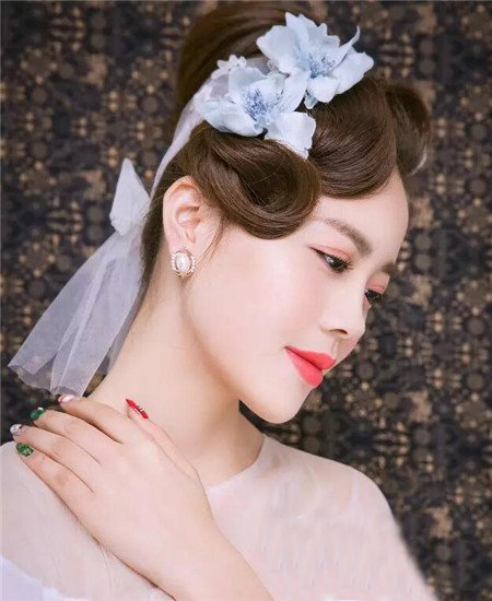 小清新风格发型适合注册结婚仪式简约大方不失美感喜欢利用新娘的鲜花