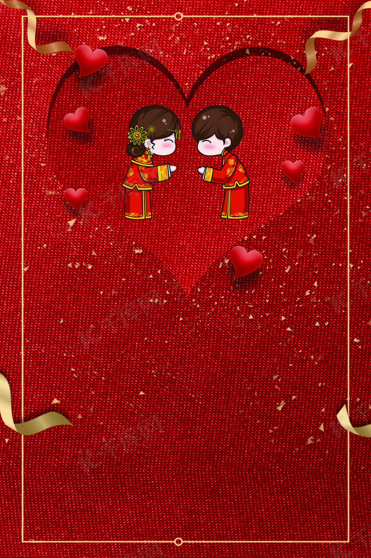 红色卡通矢量中式婚礼海报背景素材免费下载