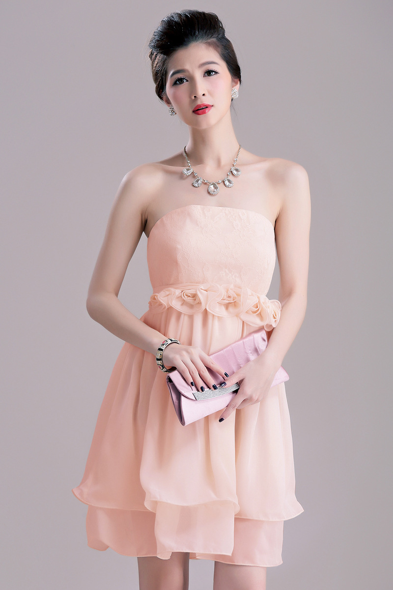 伴娘服粉色抹胸图片