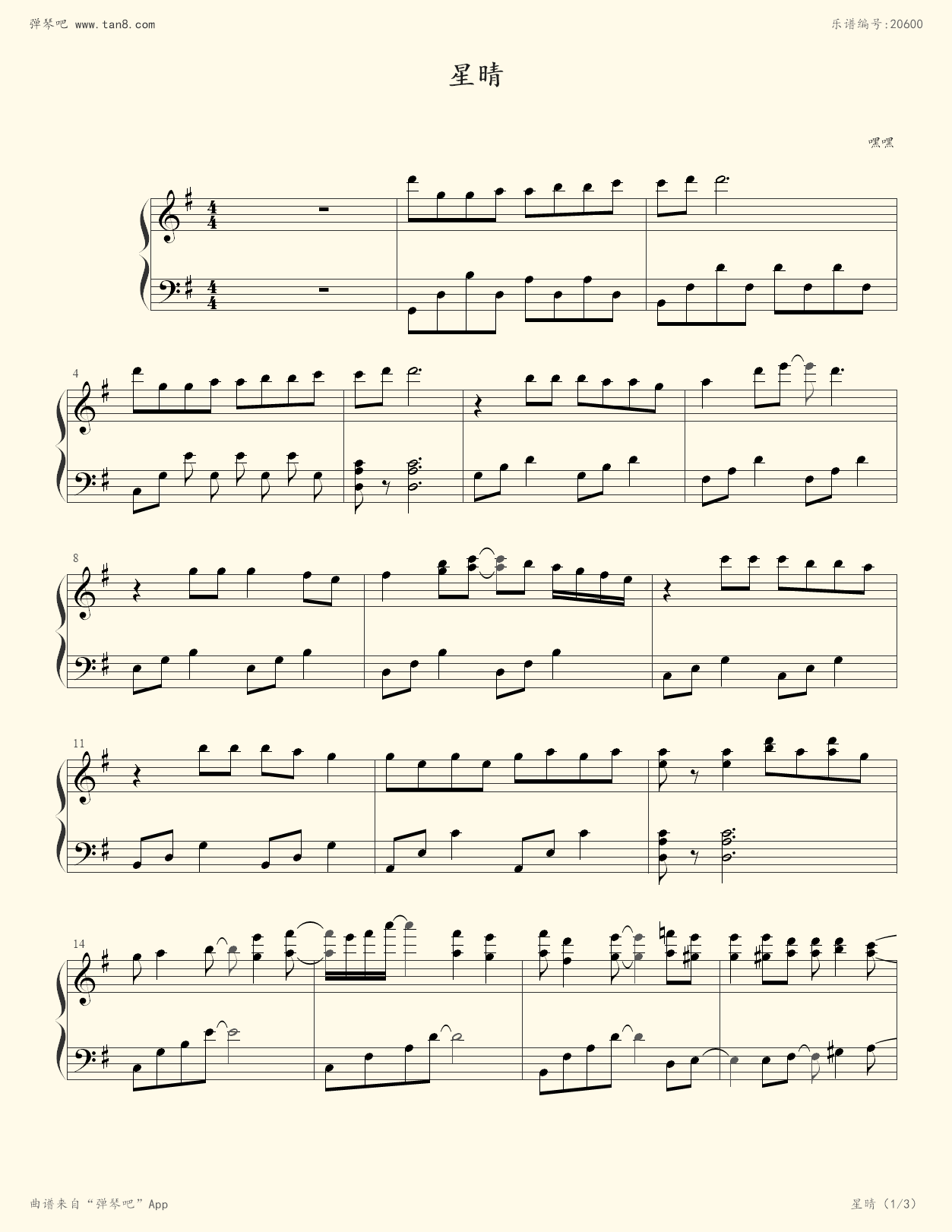 《星晴,钢琴谱》初学者简易版,周杰伦(五线谱 钢琴曲 指法)-弹吧|蛐蛐