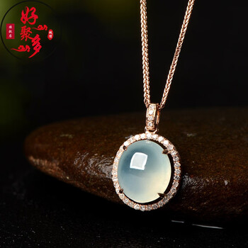 源头翡翠冰晴鸽子蛋吊坠18k金镶钻缅甸翡翠玉石挂件女士珠宝首饰项链