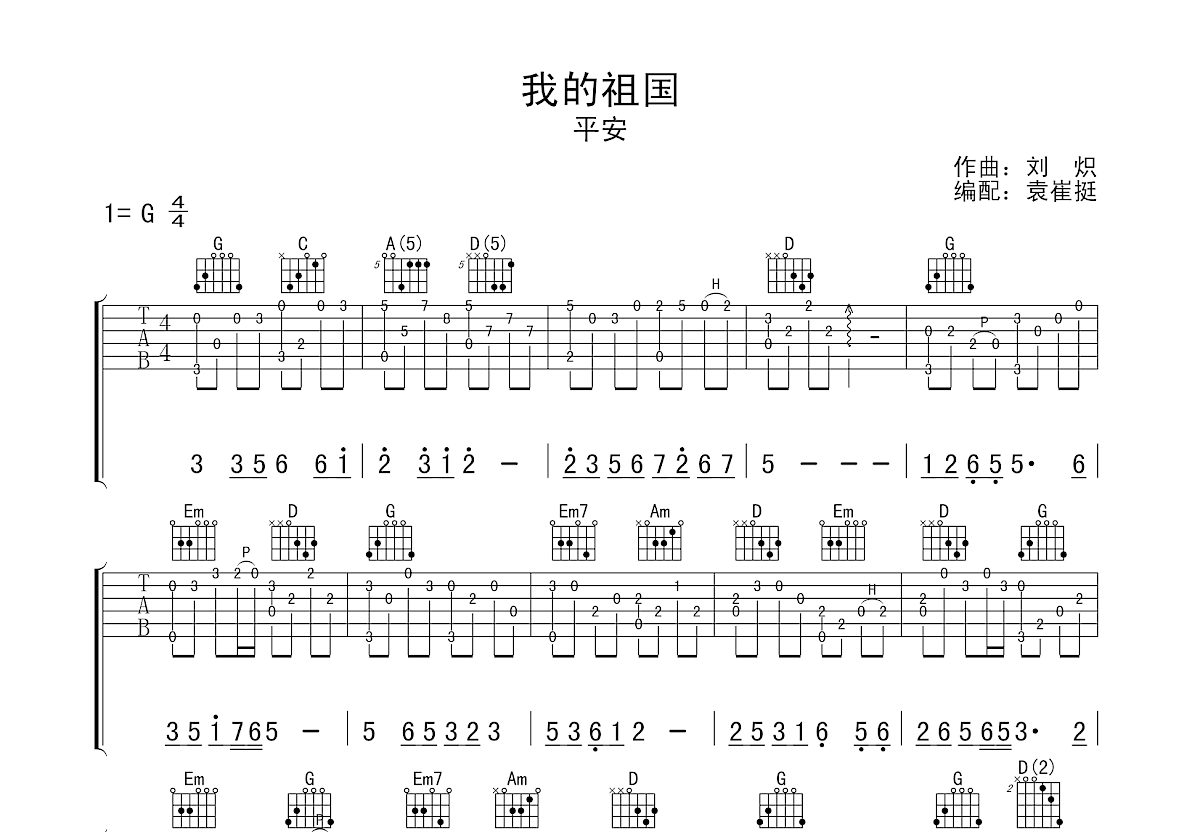 我的祖国吉他谱_佚名_c调指弹吉他谱 - 吉他世界
