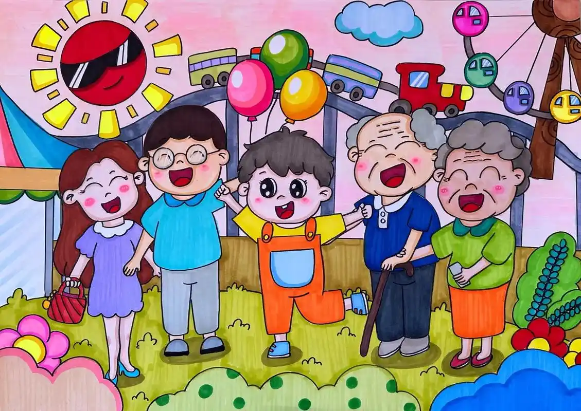 快乐的一家优秀水彩画作品欣赏_水彩画-查字典幼儿网儿童画