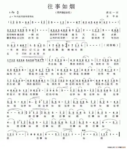 往事如烟简谱-戴雪海词 于珂群曲-歌谱网