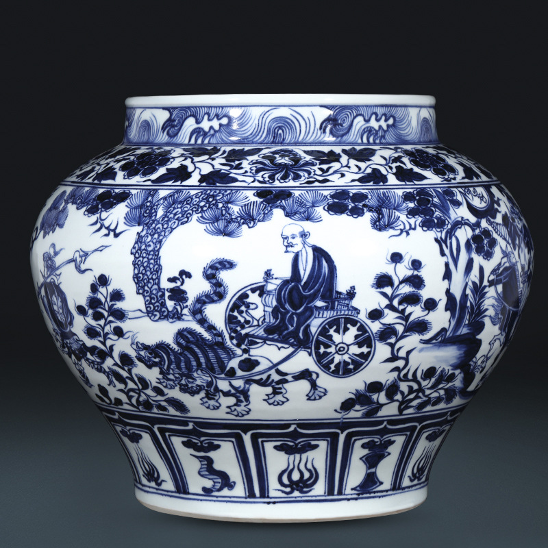 仿古元青花鬼谷子下山图花瓶大罐景德镇手绘陶瓷器花瓶收藏工艺品