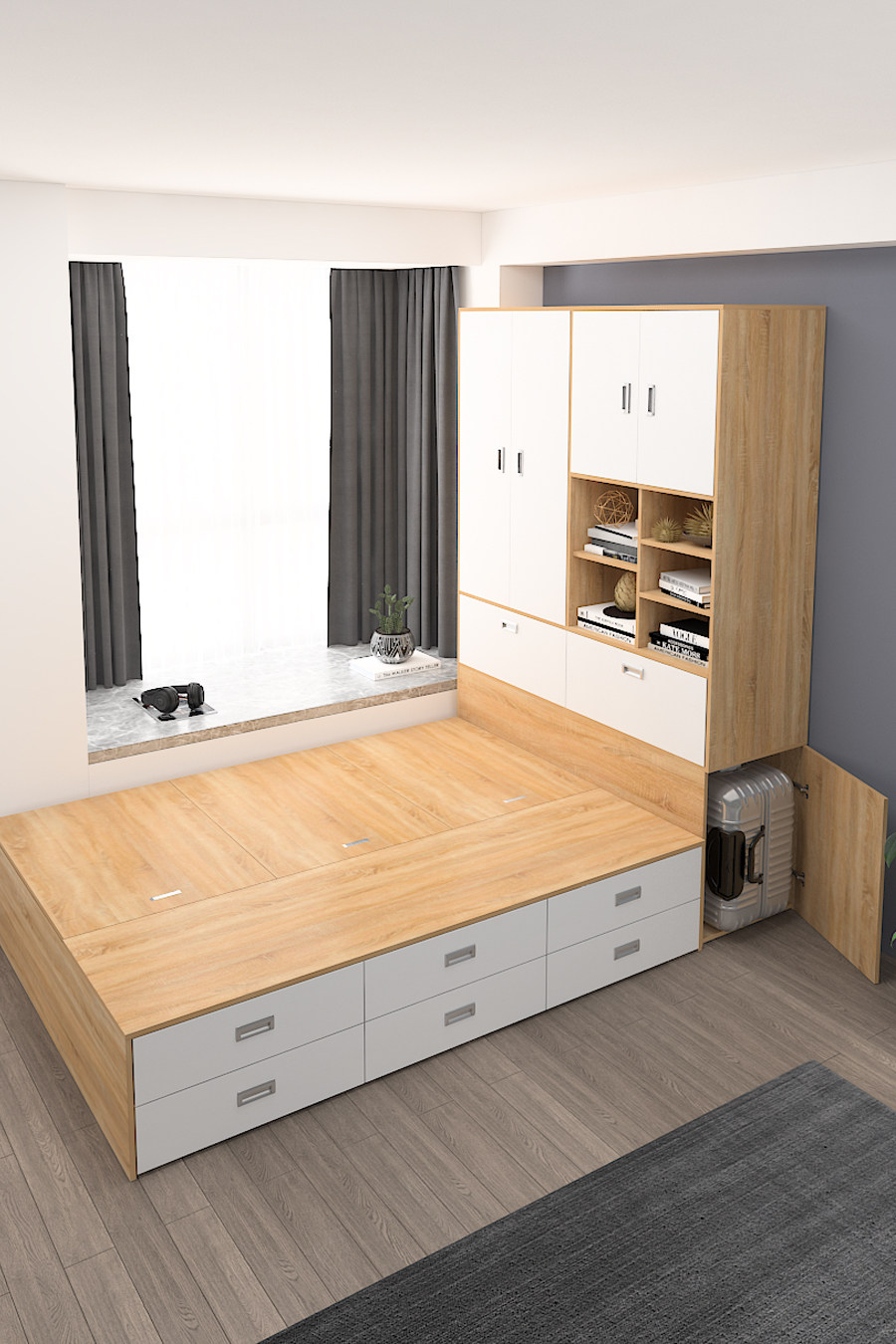 榻榻米床衣柜一体加厚实木多层板卧室箱体储物小户型省空间