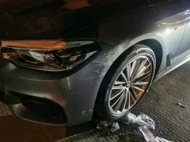 宝马5系(进口)-新款宝马530i的前保险杠侧面,左前翼子板刮花,大灯轻微