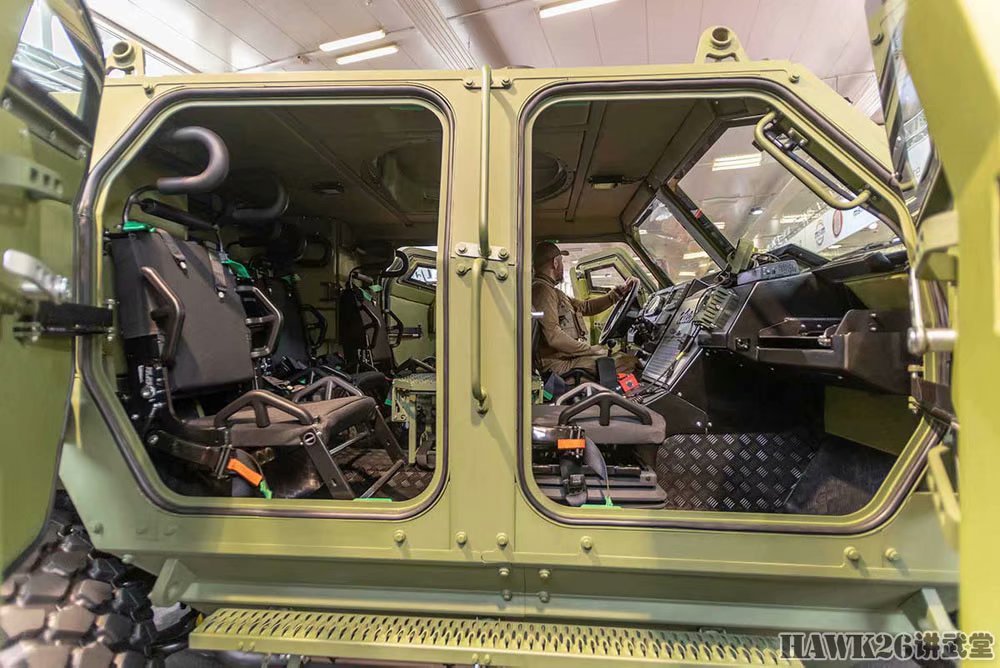 这是台风k"8x8战术装甲运兵卡车的驾驶室,同样是明亮宽敞,完全包裹在