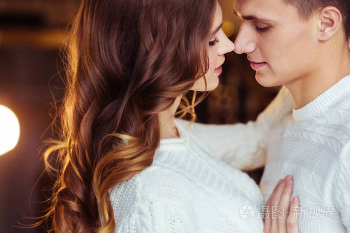 热恋中的情侣男人拥抱他的妻子