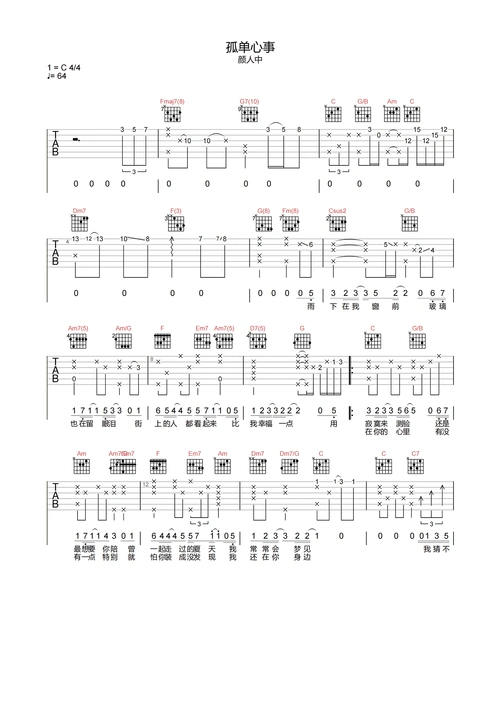 慢慢吉他谱 颜人中-慢慢六线谱c调