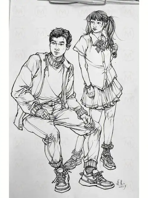 速写双人照片组合临摹