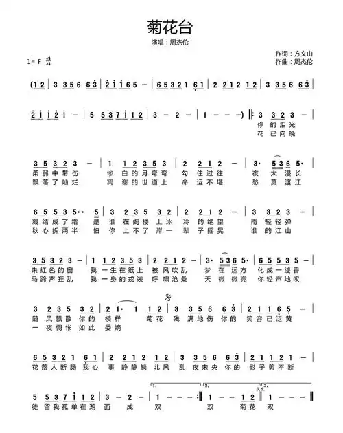 菊花台--周杰伦-通俗曲谱- 曲谱 简谱 歌谱 琴谱 总谱 音乐教程