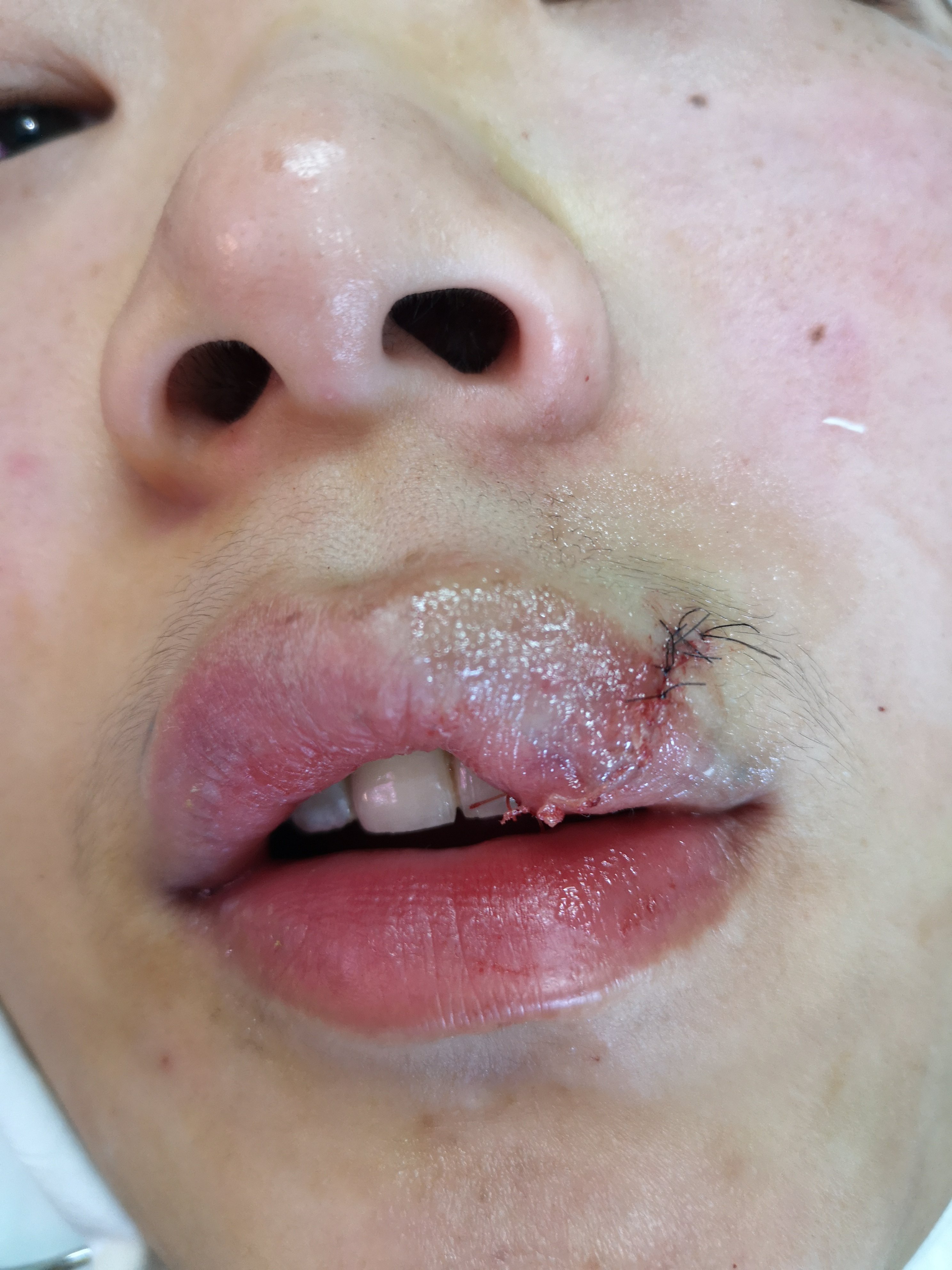 嘴角上扬和m唇两个月疤痕严重