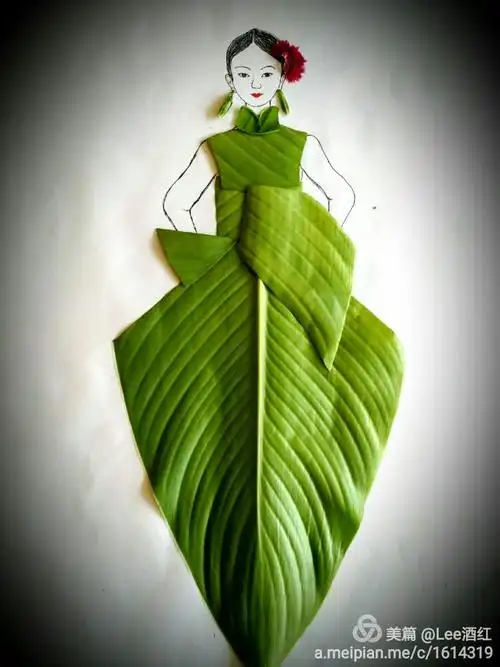 姑娘风景区身穿5999片叶子制造而成的裙子,仿佛就是"画中人"