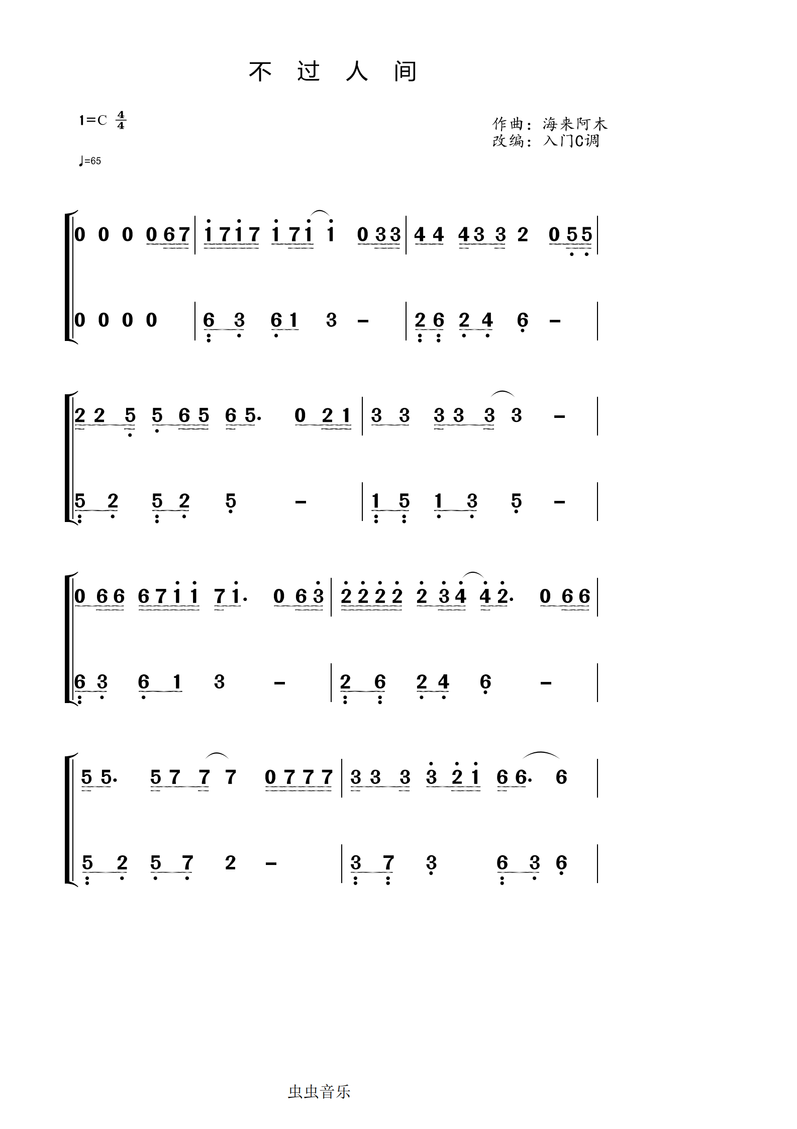 不过人间歌词简谱_简谱_曲谱_听懂音律