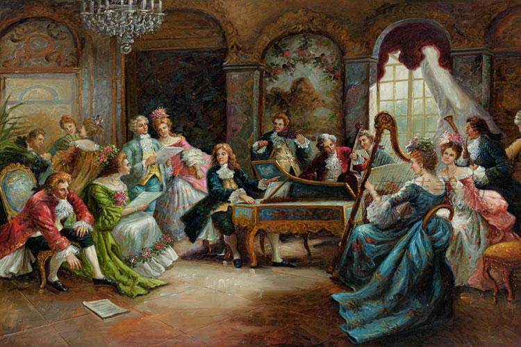 欧式宫廷聚会古典复古人物画芯喷绘油画布热销装饰画客厅沙发画心