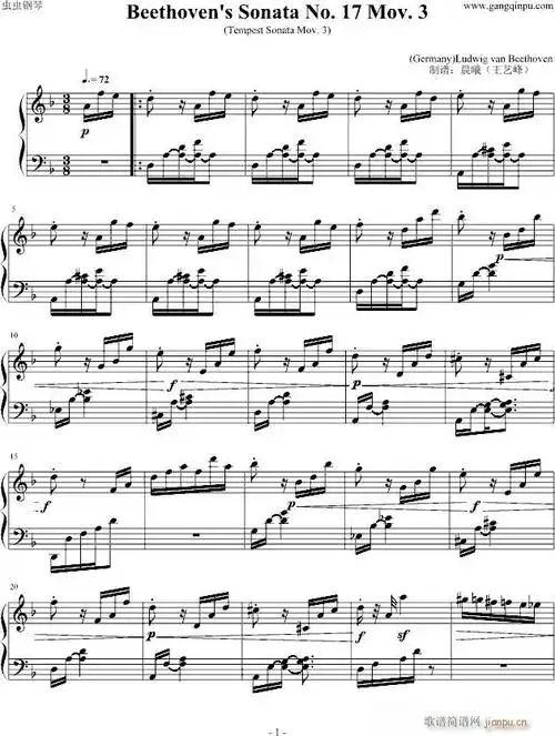 贝多芬暴风雨奏鸣曲钢琴谱-贝多芬-旋律音乐-虫虫钢琴