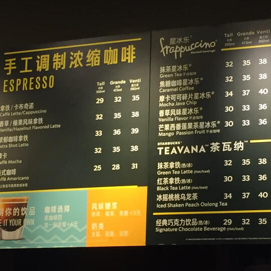 星巴克菜单
