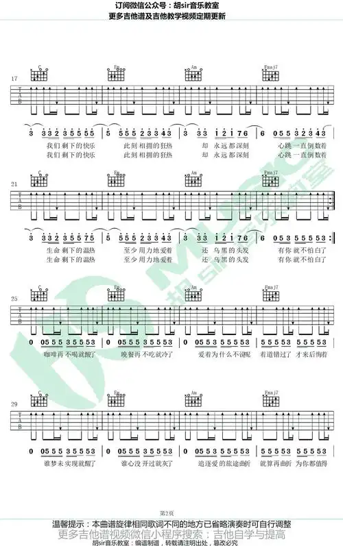 倒数吉他谱邓紫棋c调吉他图片谱2张
