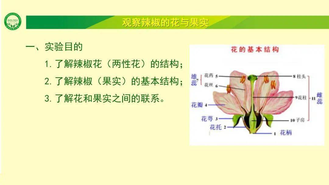 观察与思考 说出辣椒花,果实各部分结构名