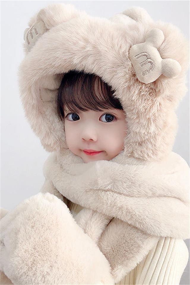 宝宝帽子冬季围巾手套一体帽男女童可爱萌加绒护耳帽儿童套头帽潮