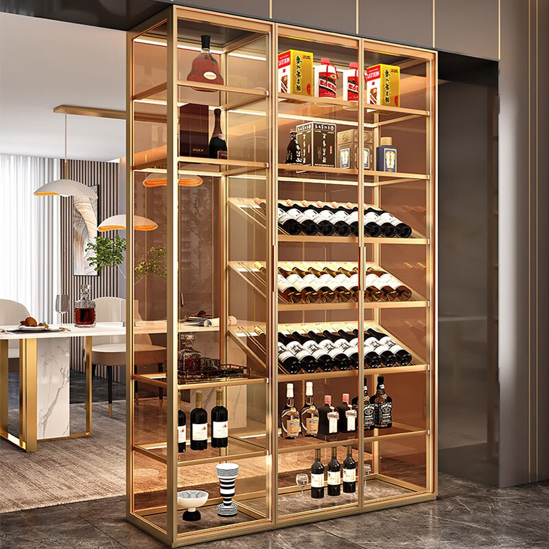 餐厅饭店定制款不锈钢酒柜 钛金带灯红酒酒柜 白酒展示柜