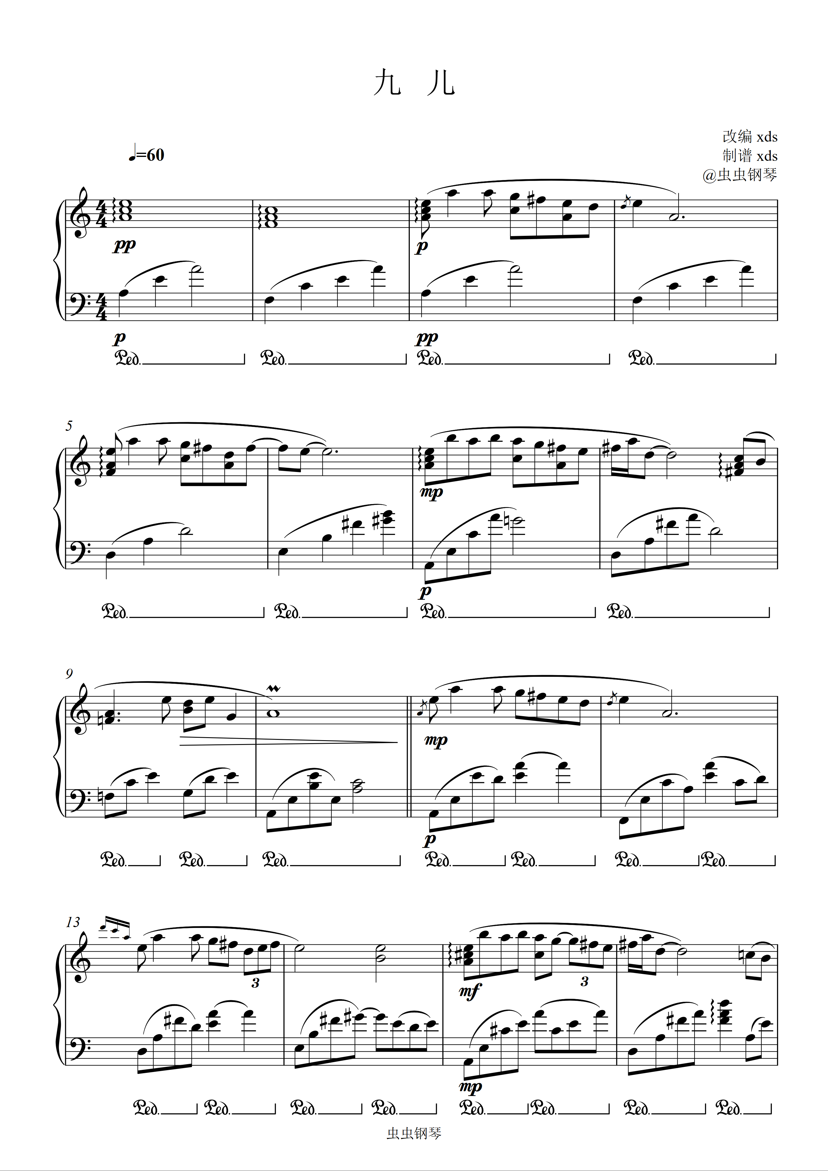 九儿钢琴谱-阿鲲- xds-虫虫钢琴