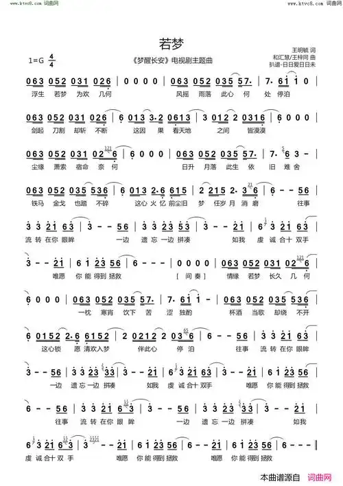 梦留别简谱(歌词)-周深演唱-桃李醉春风记谱1