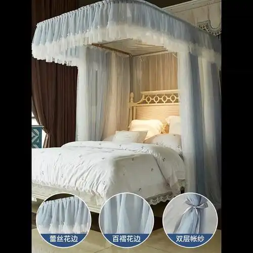 斯蔻派蚊帐免安装u型伸缩家用新款3门床帘宫廷落地支架防尘折叠不锈钢
