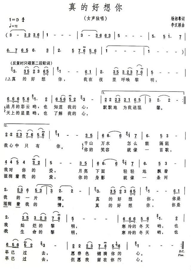真的好想你f调简谱真的好想你降e调简谱