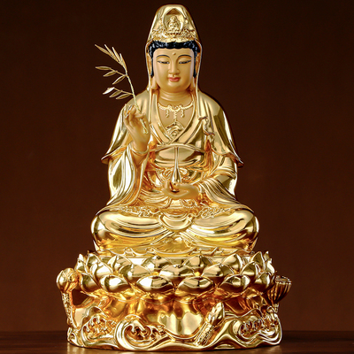 台湾贴金观音菩萨佛像纯铜观世音佛像家用供奉观音娘娘像摆件 观音