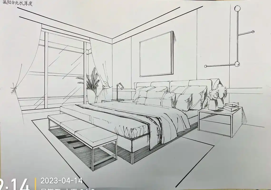 《手绘》卧室小场景.1:确定是几点透视?是两点透视,再加主观 - 抖音